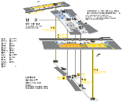 出发及候机大厅位于航站楼第三层(3F),共有8个进出口。的士和大巴均可直接停靠在航站楼出发大厅门口。进入出发大厅4号门,迎面而来的是一个醒目的电子屏幕,上面有该时段的进出港航班情况,包括了出港航班的登机口位置。