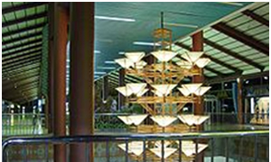 机场有150个登机手续办理柜台、30条行李传输带和42个登机闸口,也就是说每个分支航站楼分别有25个登机手续办理柜台、5条行李传输带和7个登机闸口。